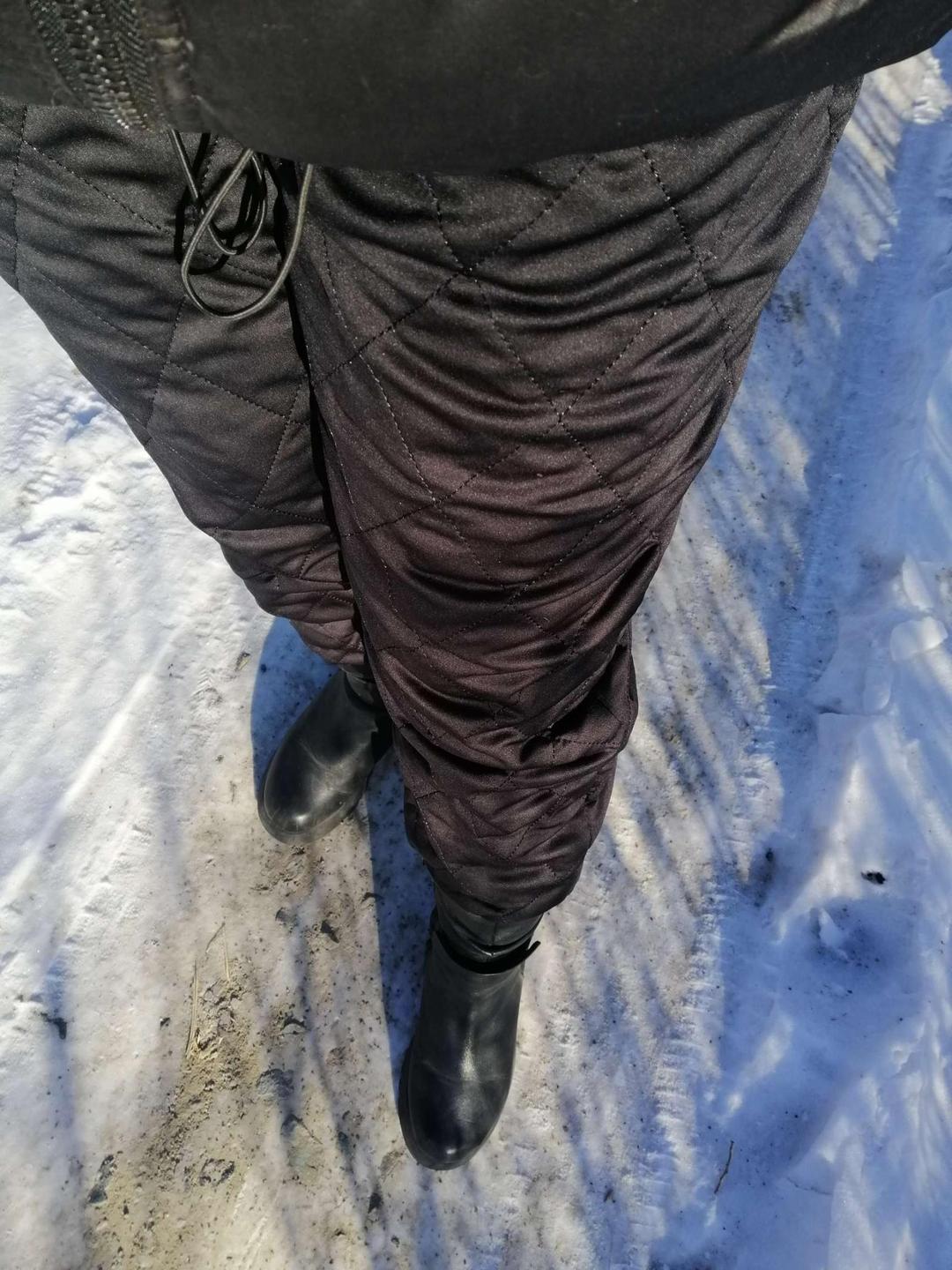 裤子质量挺好,就是没有兜有点不适应,厚度完全可以由里面穿的保暖裤来调节,很宽松比较保暖。