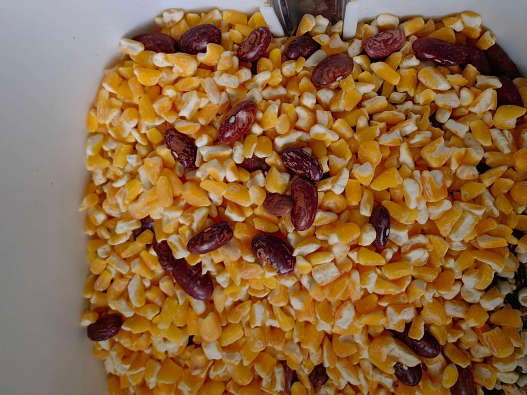 芸豆加玉米碴,半斤装一包,准备加在熬粥时用,粥中加一半各种杂粮,应该是最营养的。
