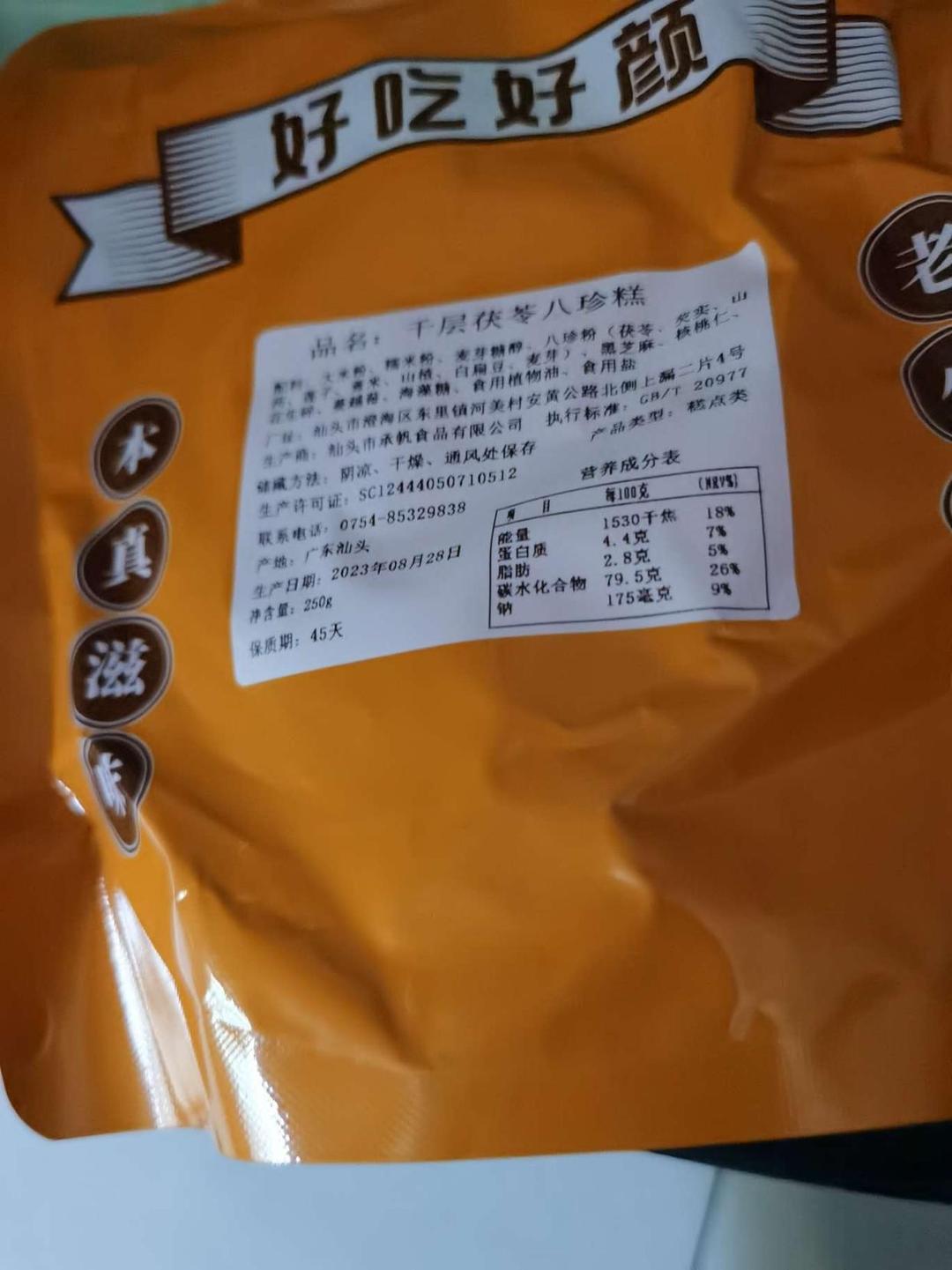 无蔗糖干层茯苓八珍糕收到就品尝了,品感好,还是有点甜,吃完后还会再买。