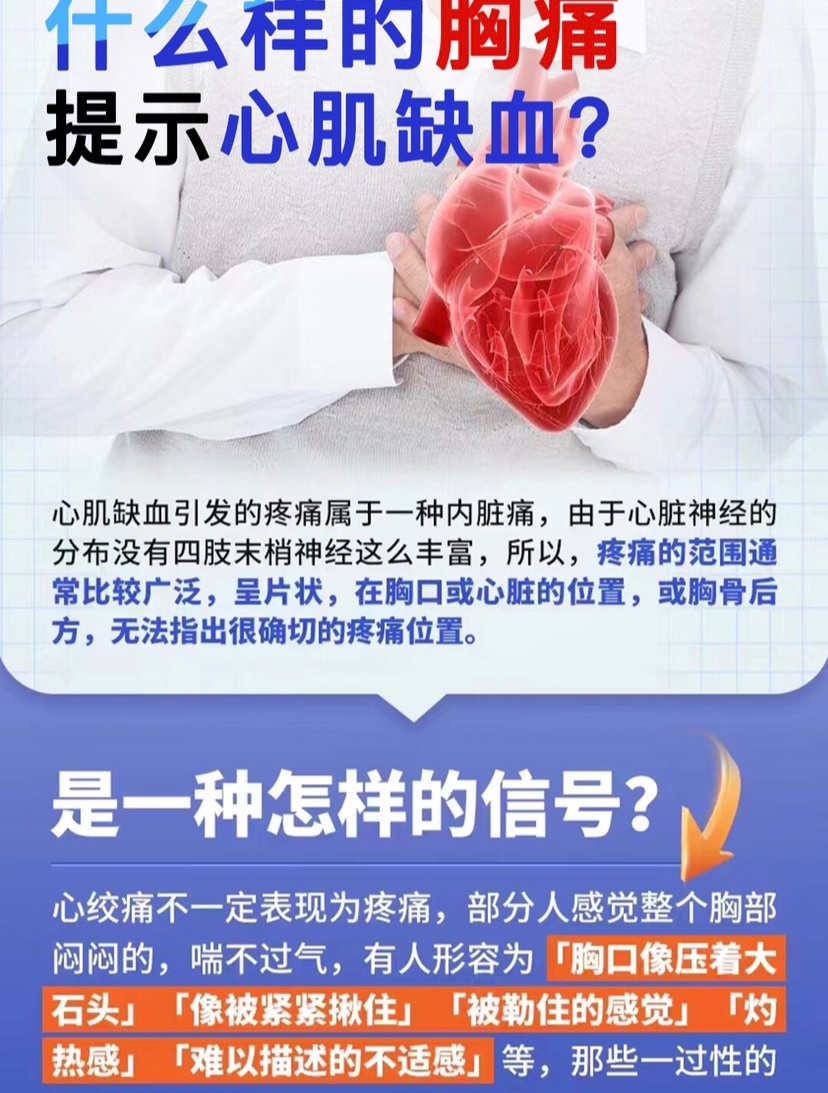 ⚠️心肌缺血常引发心绞痛,但实际上心绞痛不一定表现为疼痛,有人形容为【胸口像压着大石头】【像被紧紧揪住】【被勒住的感觉】【灼热感】... ❌那些针刺样、刀割样的疼痛,一般却不是心绞痛。