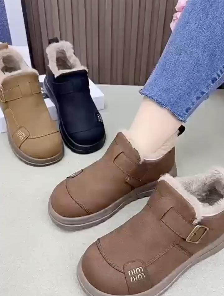 京昇超柔细绒厚底轻便鞋扣雪地靴12-32·驼色