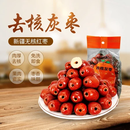 绿洲玉新疆去核灰枣今日必抢限时促销啦,精选新疆若羌一级灰枣,去核率高达98%,食用方便,适合炖煮夏季莲子红枣银耳羹