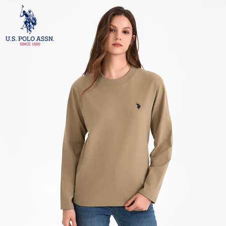 USPA秋冬舒绒棉长袖圆领T恤衫男女同款T928·驼色