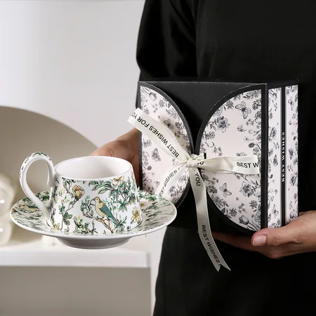 莫里斯风复古花鸟水彩画咖啡杯碟,具美观具品质的陶瓷杯配套碟。