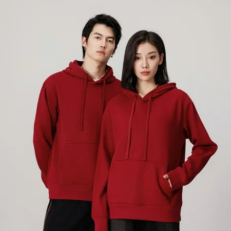 休闲风冬季加绒连帽情侣长袖星空棉百搭纯色卫衣238·酒红