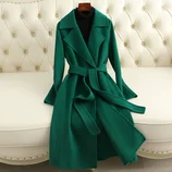 【100羊毛】航帆福利款赫本风修身双面呢长款大衣19806·绿色