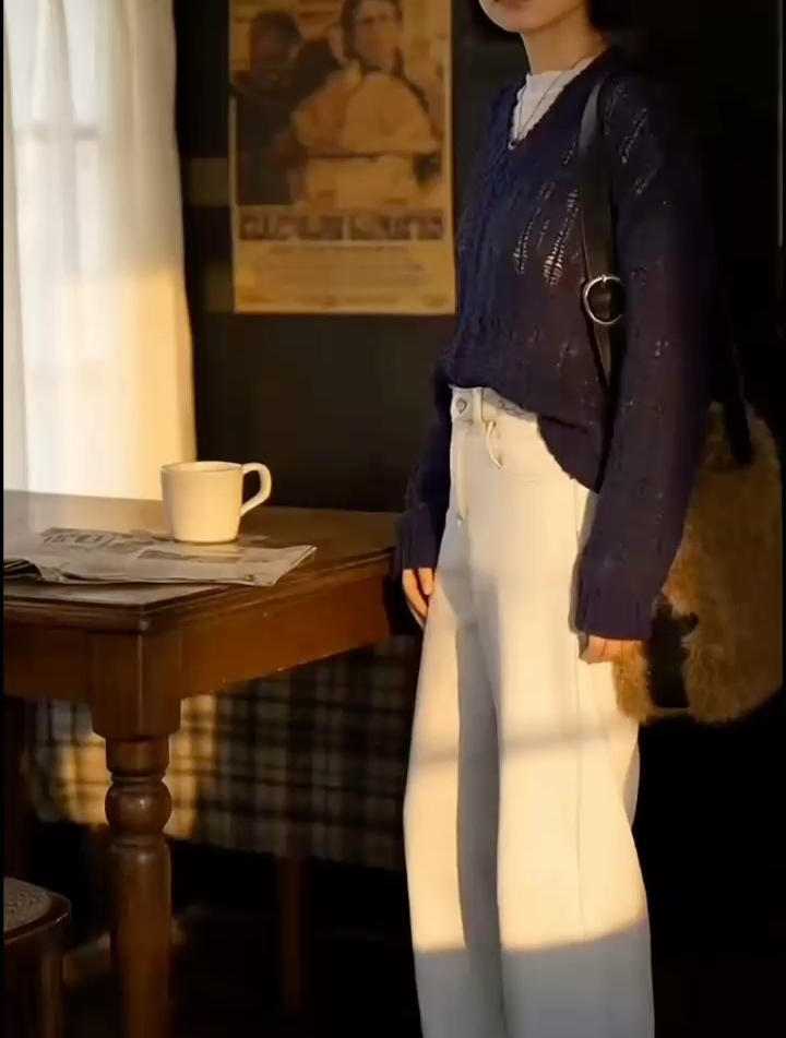 FORMSHEA复合绒阔腿四面弹牛仔裤5896-2·杏色