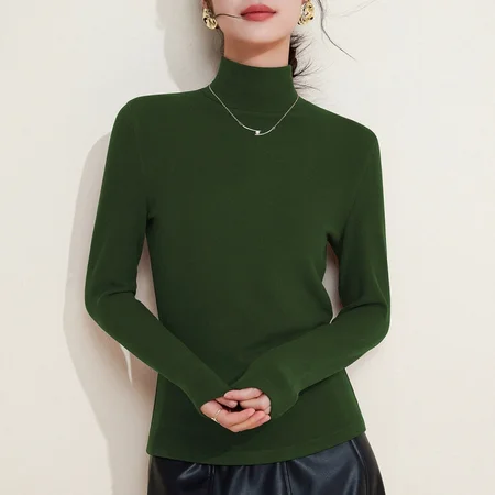【莱赛尔天丝暖绒】修娴高领T恤W12·泰绿