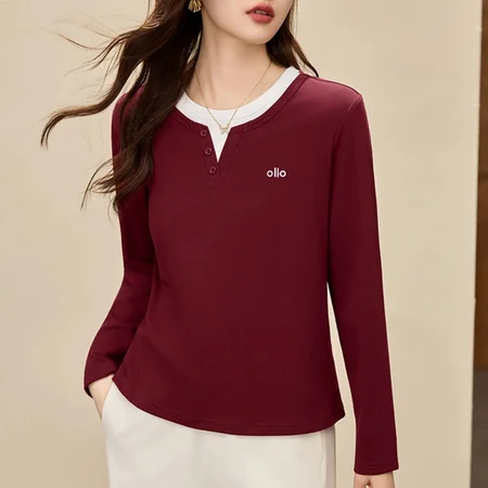 预售【高弹92棉】轩凌子高支撞色刺绣T恤S82530155·安可拉红