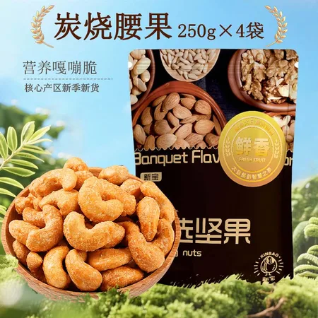 香酥炭烧腰果250g*4袋 熟腰果仁 薄薄酥皮包裹大颗果仁