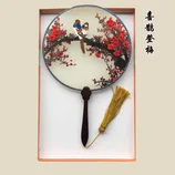 【清仓】苏绣手工双面真丝刺绣团扇黑檀木手柄扇子·喜鹊登梅