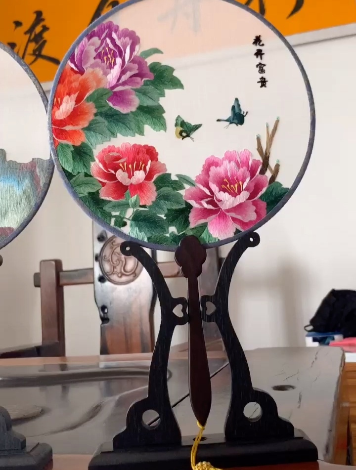 苏绣手工双面真丝刺绣团扇·花开富贵