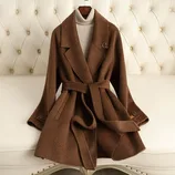 【100羊毛】航帆小翻领修身双面呢中长大衣2306·咖色