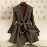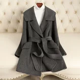 【羊毛蚕丝驼绒】航帆高品中长款收腰双面呢大衣2417·玛瑙灰