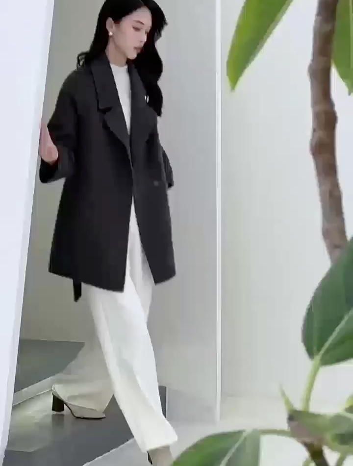 【羊毛蚕丝驼绒】航帆高品中长款收腰双面呢大衣2417·混黑桃