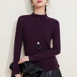 【羊绒触感】修娴云柔正肩超弹中领T恤R6030·龙葵紫