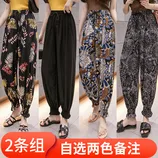 【2条超值组】冰丝印花防蚊沙滩空调房薄款灯笼裤·自选两色备注