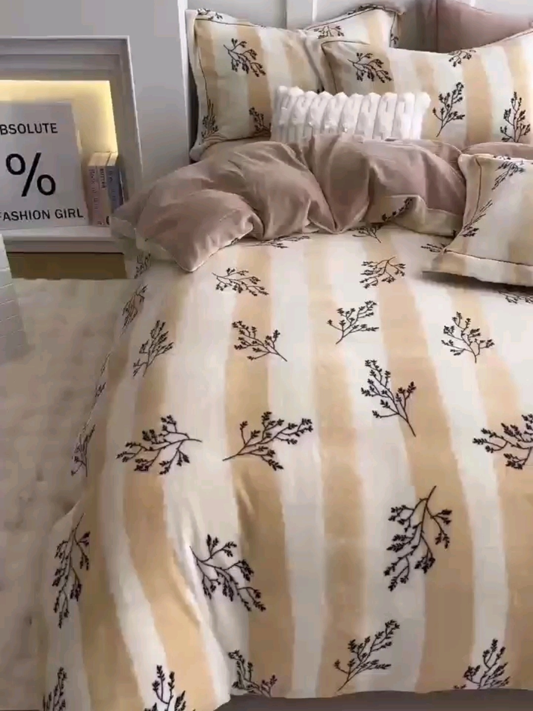 窝美居新款高克重小清新印花牛奶绒四件套·枝蔓-咖