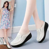 真皮透气洞洞松糕厚底大码轻便凉拖鞋·米白色