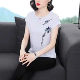 雀说刺绣t恤女短袖中国风宽松大码半袖民族风上衣打底衫TAL9609·白色