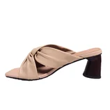 【沛谊家】2022新款大牌明星同款羊皮小方跟拖鞋AT787-8·豆沙色