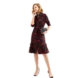 丁摩2019新款重磅真丝连衣裙黑红树叶印花连衣裙·图色
