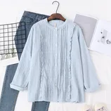 谜存 100%双层棉纱长袖褶皱时尚简约衬衫(立领/翻领可选)·蓝色立领