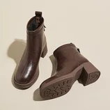 砾驾新款加绒真皮马丁靴韩版短靴厚底休闲瘦瘦靴·NJ-518-52棕棉