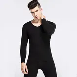 纤丝鸟男士棉木代尔抽条V领套装-黑色