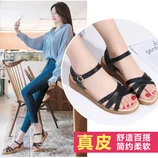 谜存 真皮妈妈凉鞋·平跟厚底防滑超舒适 夏日清凉百搭显气质·黑色